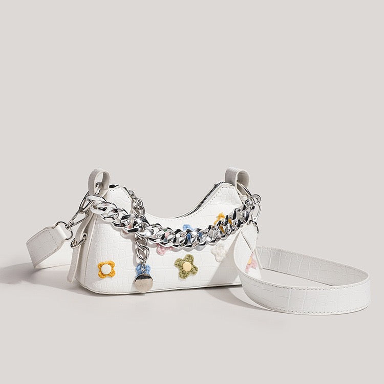The Floral chic white handbag exudes elegance and style with its stunning floral design. It is a must-have for any fashion-forward individual looking to elevate their wardrobe.